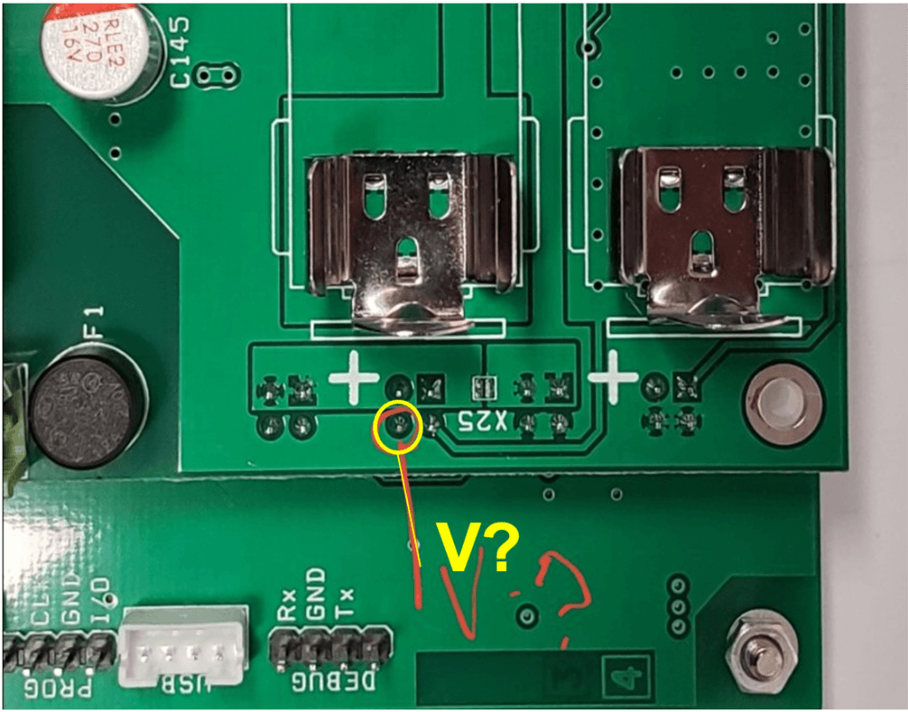Remove the housing cover, unscrew the 4 screws fixing the upper board. On the back side of the upper board, find and measure with a multimeter the resistance of the resistor R162. the nominal resistance value should be 100 ohms ± 50 ohms. If the resistance is significantly different (usually higher in case of malfunction), replace the resistor. The enclosure type is SMD 0805. Alternatively, the old resistor can be replaced with two similar resistors with a nominal resistance of 200 ohm each, in parallel (on top of each other).